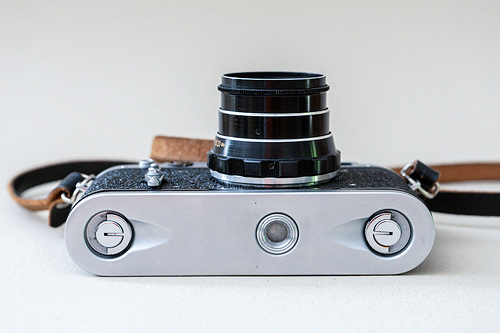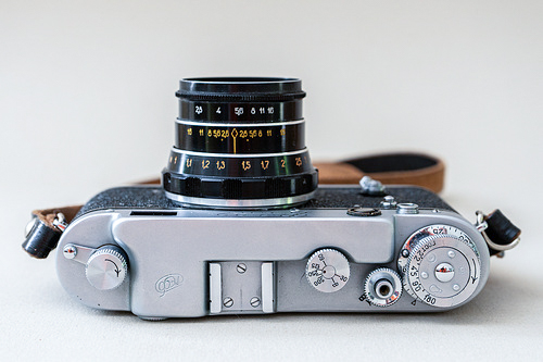Schade, dass der Meßsucher nicht mehr ganz so gut funktioniert wie er soll. Die beiden Bilder, die man in Einklang/deckungsgleich bringen sollte, sind untereinander versetzt. Dies lässt sich aber wohl einstellen (nur wie?). Bis dahin muss ich die Entfernung also immer ein bissl anpassen. Ebenfalls ist das miterworbende Industar 61 1:2,8/53mm nicht mehr in einem so guten Zuststand. Die Lamellen sind leicht verölt. Ich muss mal schaun, dass ich für´s M39 Bajonett mal was anderes bekomme.