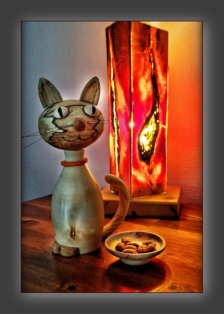 Miezekatzen .... schnurrrrr .... (Nur zur Info .... die nachfolgenden Bilder veranschaulichen nur, wie meine Katzen nach dem Drechseln ungefähr aussehen. Jede wird anders werden, da ich NIE das selbe Holz habe. Ich drechsel halt aus dem Bauch raus nach Gefühl und nicht nach Maß. Köpfe, Ohren, Augen und Nase sind i.d.R. noch nicht festgeklebt. Es besteht die Möglichkeit diese somit vor Ort bei mir zu wechseln / tauschen. )