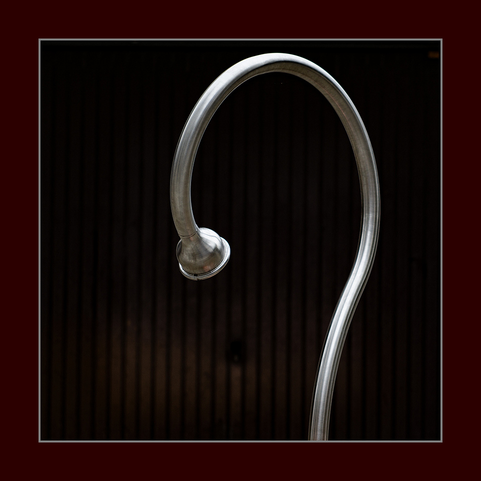Der Haken ist nicht klein - nein, nein, nein .... der Haken ist ca. 2m groß und steht in Meinerzhagen. Der Hintergrund ist ein Garagentor.